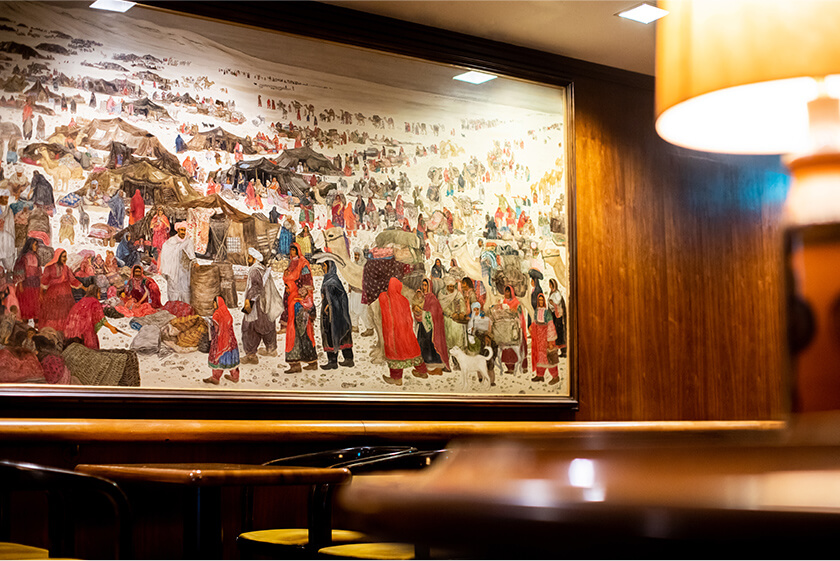 Mr. Kai depicted various aspects of Middle Eastern culture and people through oil paintings, pen drawings, and ink paintings, among other techniques. Many of his works are proudly displayed in “Coffee sya Noda” stores.